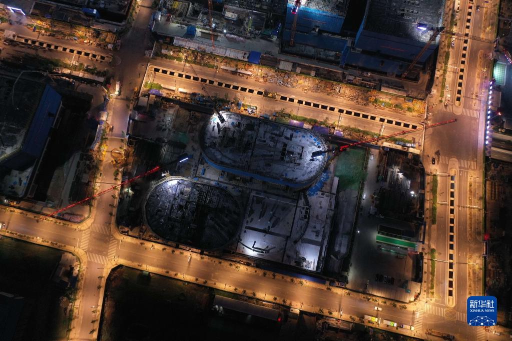 河北雄安新區容東片區雄安·電建智匯城建設項目夜景(8月17日攝,無人機照片)。