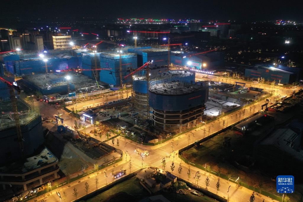 河北雄安新區容東片區雄安·電建智匯城建設項目夜景(8月17日攝,無人機照片)。