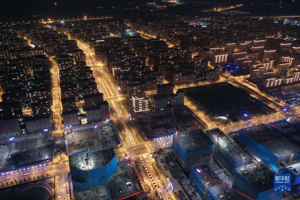 河北雄安新區容東片區及雄安·電建智匯城建設項目夜景(8月17日攝,無人機照片)。