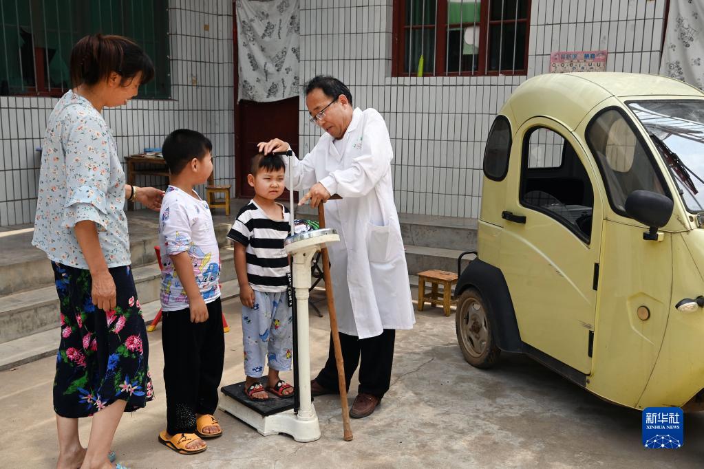 8月17日,村醫牛薛武(右一)在北司村李口組為張梓澤小朋友檢查身體。