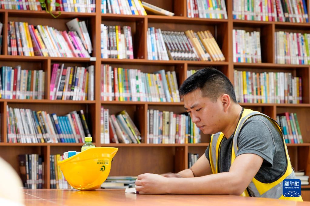 8月17日,重慶市九龍坡區(qū)謝家灣街道萬象城的工會戶外勞動者服務(wù)站內(nèi),一名建筑工人在服務(wù)站圖書角看書。