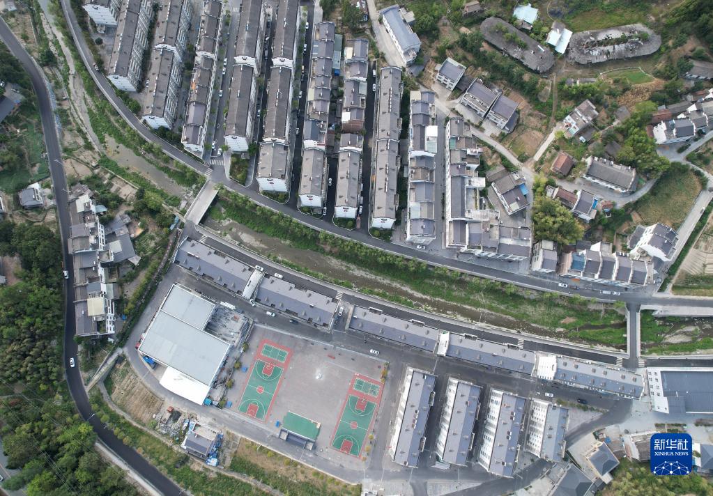 俯瞰老縣鎮(zhèn)錦屏社區(qū)(無人機照片,8月16日攝)。