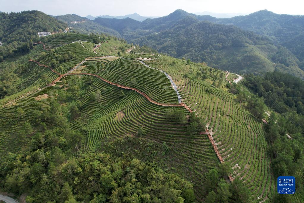 老縣鎮(zhèn)蔣家坪村茶山一景(無人機照片,8月17日攝)。