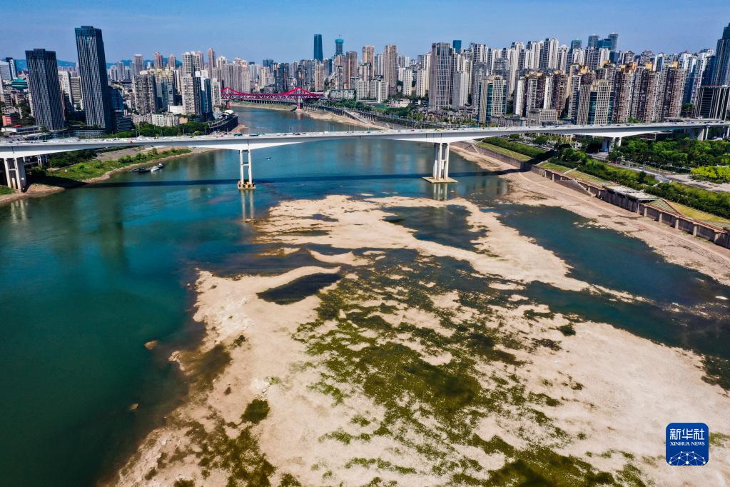近期,流經(jīng)重慶主城區(qū)的嘉陵江的水位明顯降低,一些本來淹沒在水中的灘涂裸露出來。據(jù)水文專家分析,這種“汛期反枯”的罕見現(xiàn)象是上游來水減少、連晴高溫少雨天氣所致。