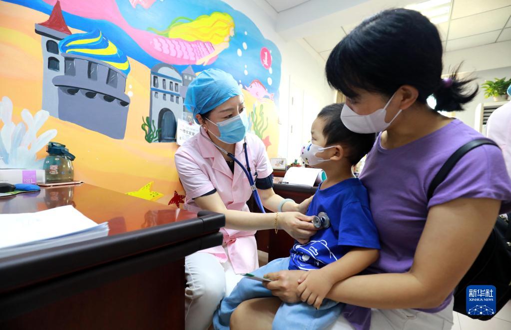 8月19日,在河北省石家莊市長安區(qū)婦幼保健院,醫(yī)務人員為兒童進行入園體檢。