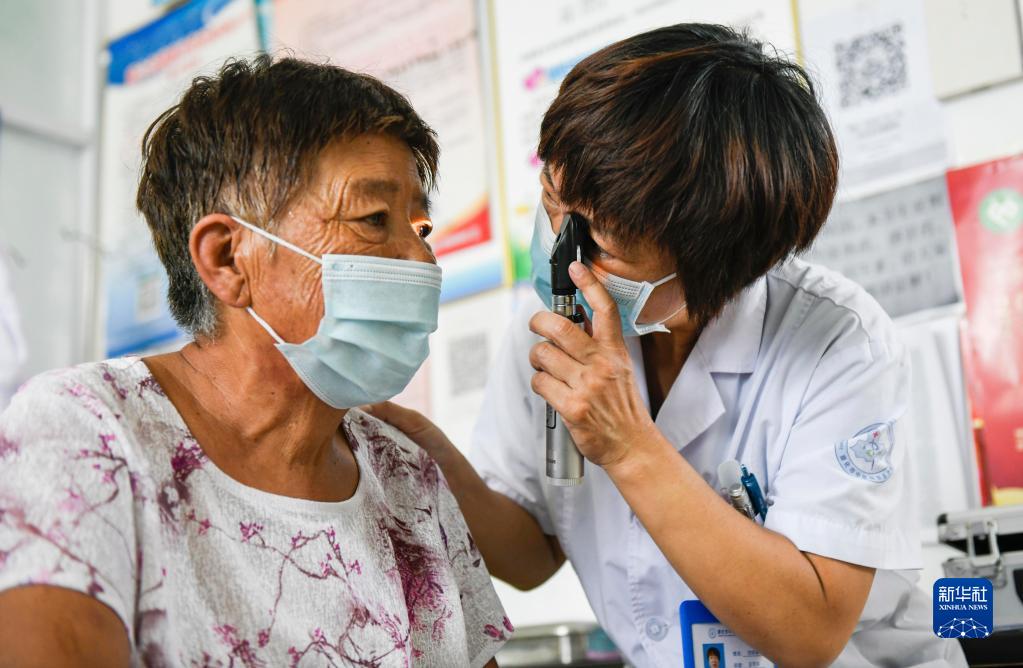 8月19日,河北省遵化市崔家莊鎮楊家莊村,一名醫生在一場義診活動中為村民進行眼部檢查。