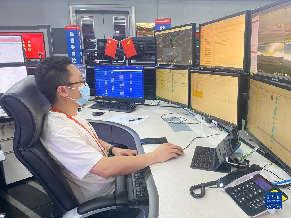 8月15日,海口美蘭國際機場的服務專員在機場運控大廳內處理航班計劃與運行協調事項。