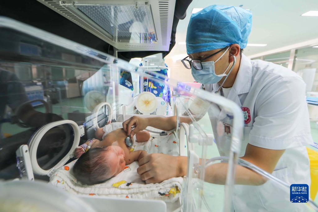 8月19日,醫生在貴州省黔東南苗族侗族自治州岑鞏縣婦幼保健院新生兒科工作。