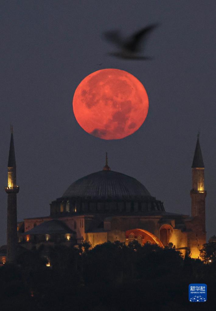 這是8月12日清晨在土耳其伊斯坦布爾拍攝的滿月。