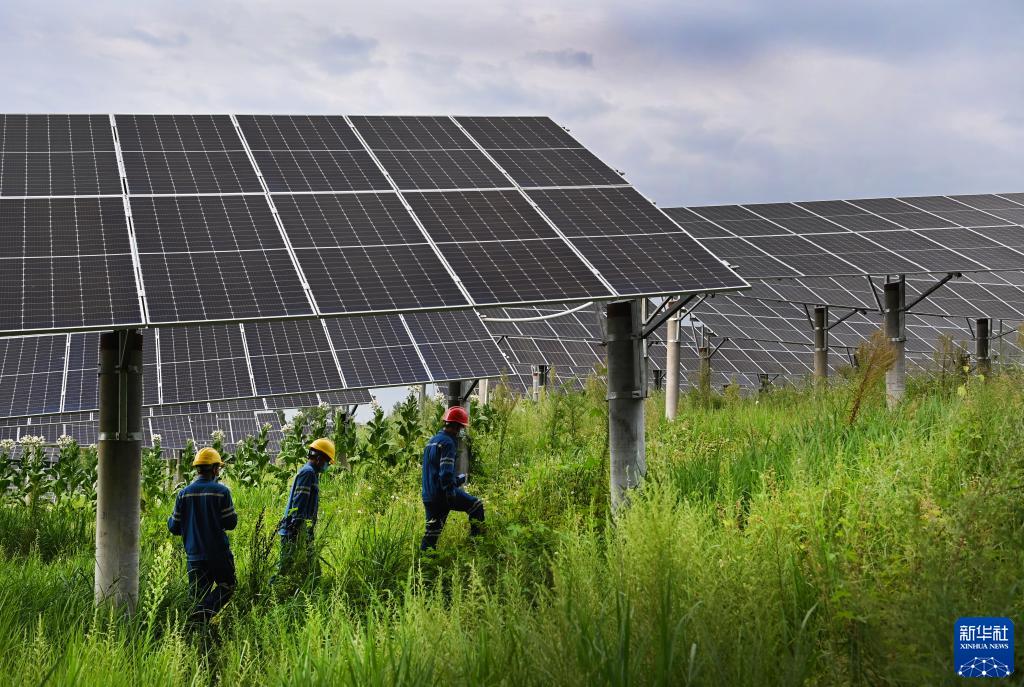 負責生產運維的湖南安華源電力科技有限公司員工對光伏區進行日常巡視(8月19日攝)。