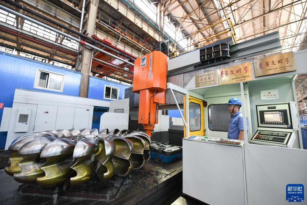 8月20日,在哈電集團哈爾濱電機廠有限責任公司的車間,工人在生產作業。新華社記者 王松 攝
