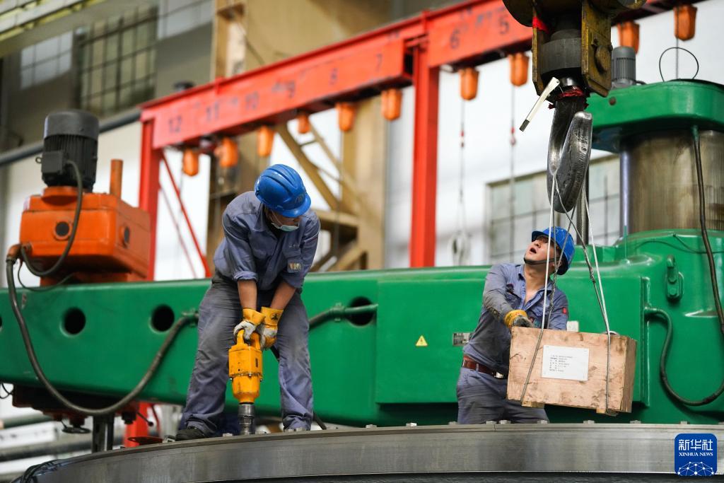 8月20日,在哈電集團哈爾濱電機廠有限責任公司的車間,工人在生產作業。新華社記者 王松 攝