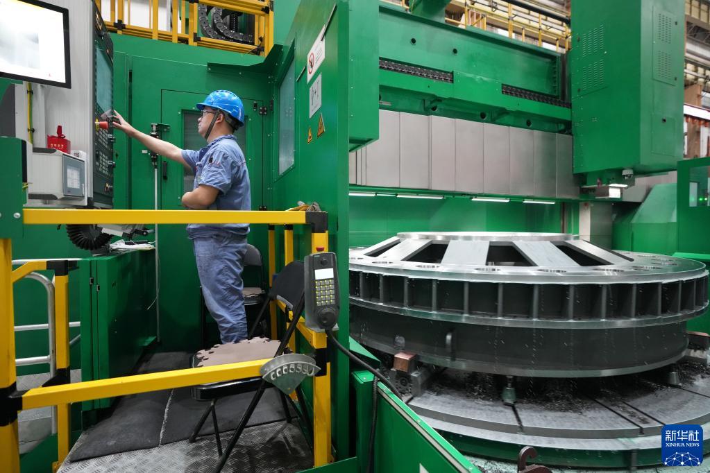 8月19日,在哈電集團哈爾濱電機廠有限責任公司的車間,工人在生產作業。新華社記者 王建威 攝