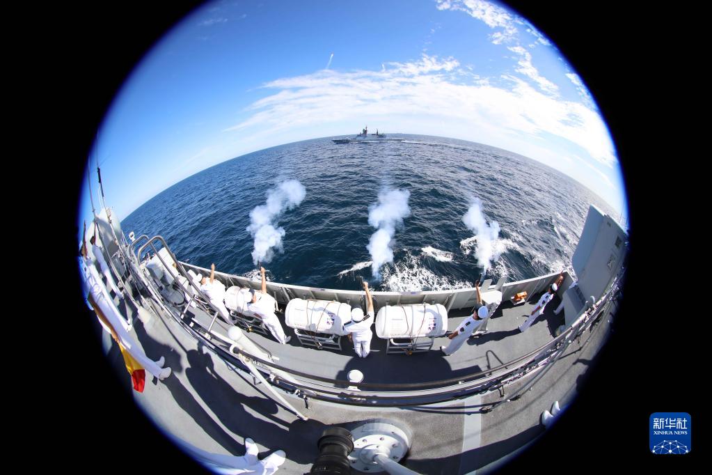 8月20日,“國際軍事比賽-2022”“海洋之杯”比賽在山東青島附近海域閉幕。這是閉幕式現(xiàn)場。新華社發(fā)(王光杰 攝)