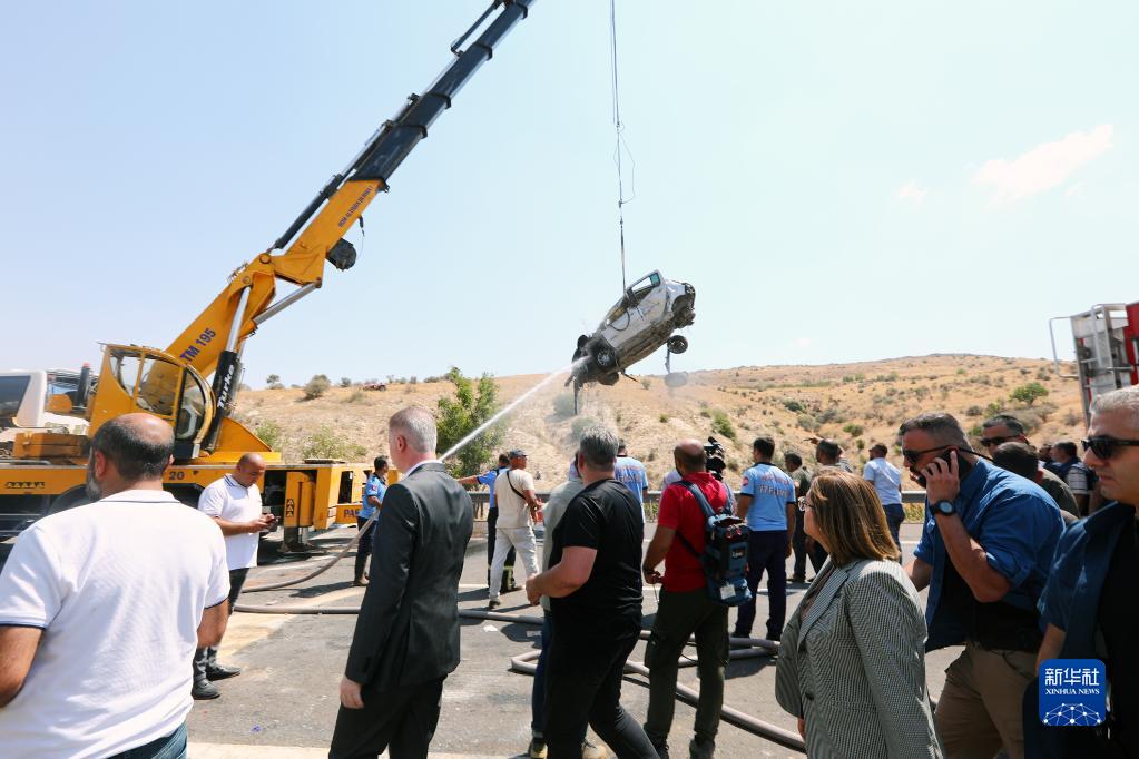 這是8月20日在土耳其加濟安泰普省拍攝的交通事故現場。