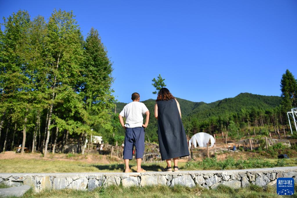 8月19日,劉休(左)和周燕在商討鄉村藝術節的安排。