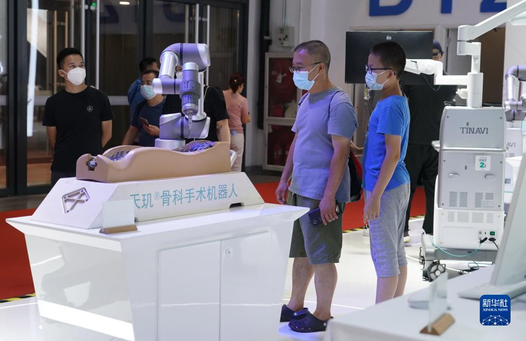 這是在2022世界機器人博覽會“機器人+醫療”展區現場拍攝的骨科手術機器人(8月20日攝)。