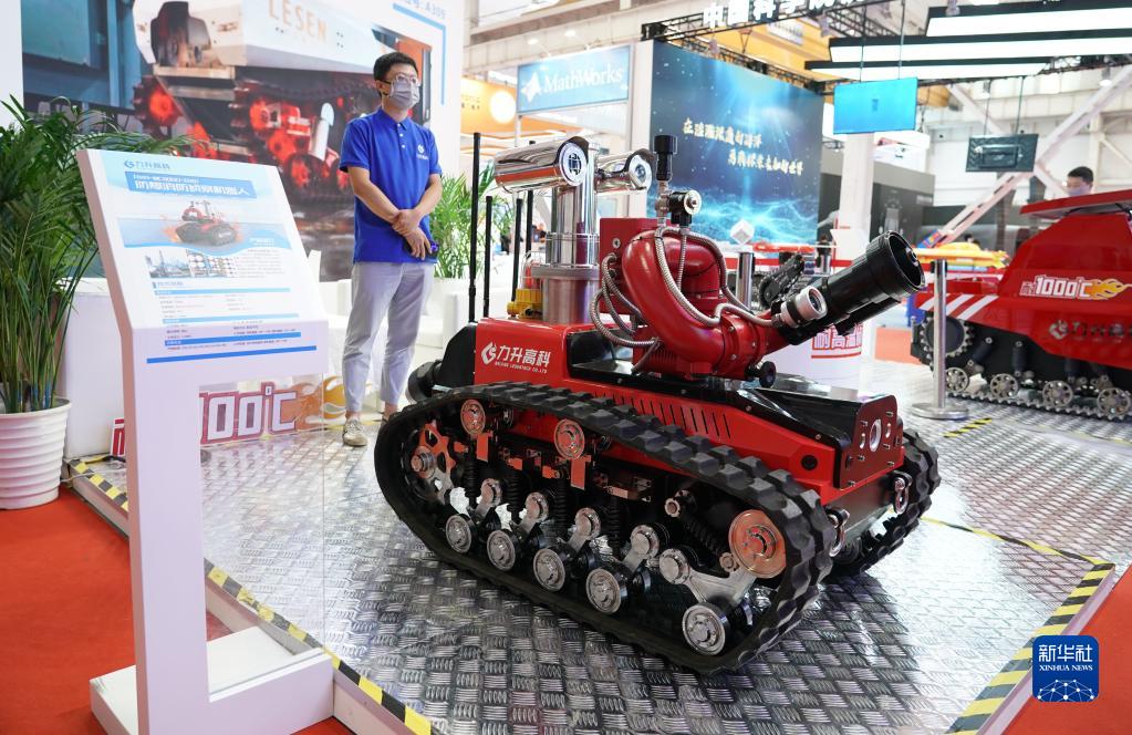 這是在2022世界機器人博覽會“機器人+制造”展區現場拍攝的防爆消防偵察機器人(8月19日攝)。