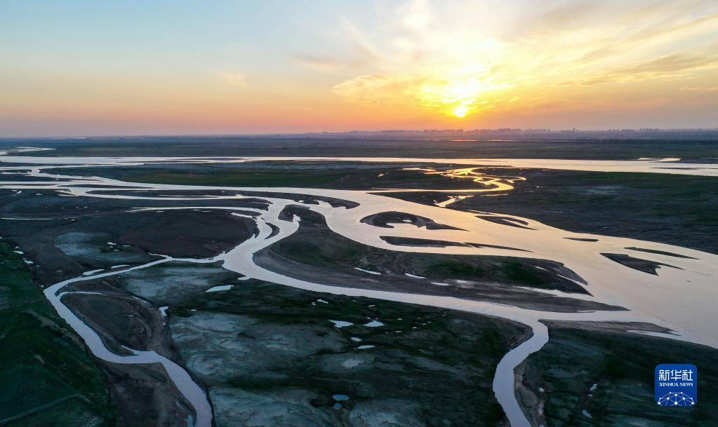 8月16日在內(nèi)蒙古鄂爾多斯市杭錦旗拍攝的黃河景觀(無人機(jī)照片)。