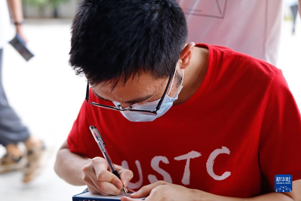 6月28日,在中國科學技術大學畢業典禮上,一名2022屆畢業生寫下對2022級新生的祝福話語。