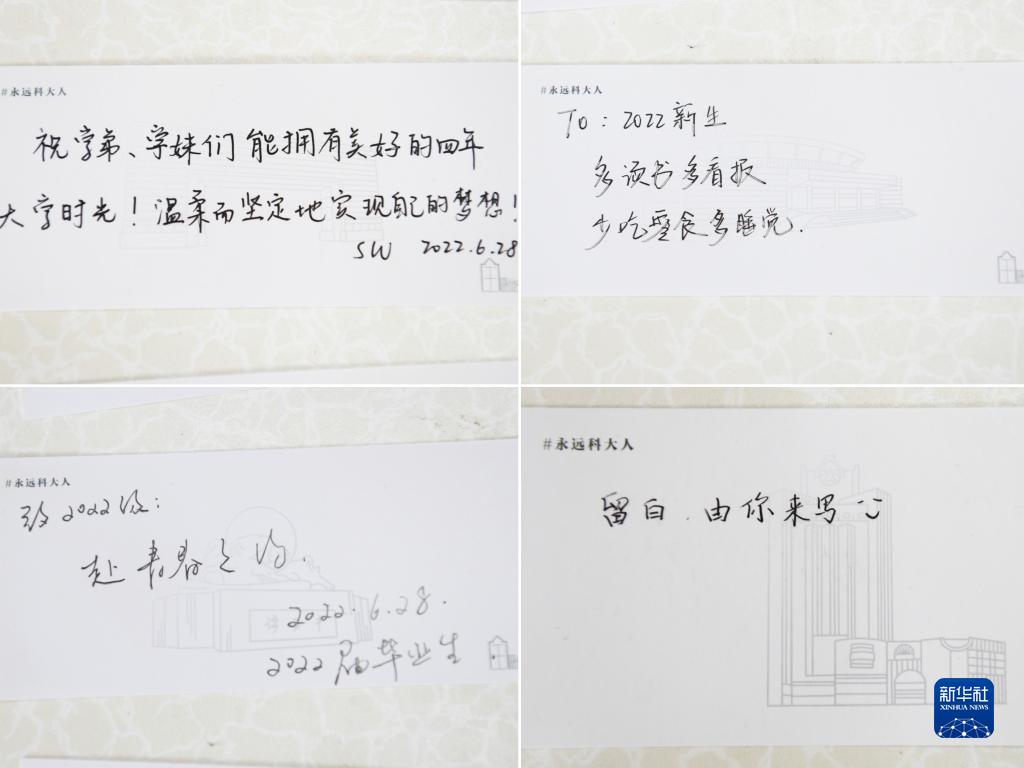 這張拼版照片為8月21日拍攝的2022屆畢業生寫給2022級新生的祝福。