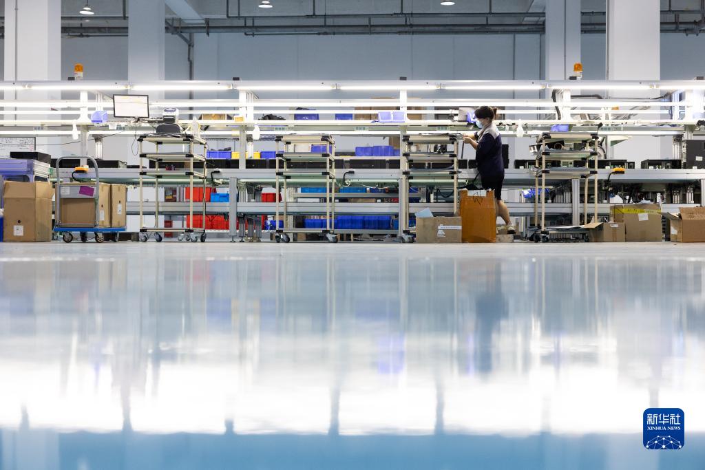 在臨港新片區洋山特殊綜合保稅區的一家電子公司生產車間內,作為第三方保稅維修業務的一部分,工人在維修電子設備(8月17日攝)。