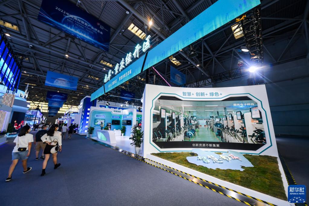 8月21日,媒體記者和嘉賓在2022中國(guó)國(guó)際智能產(chǎn)業(yè)博覽會(huì)會(huì)場(chǎng)內(nèi)參觀。