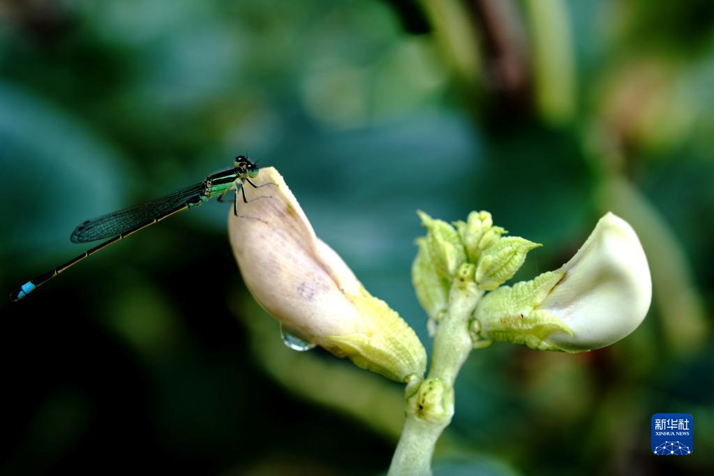 8月21日在上海松江區(qū)洞涇鎮(zhèn)一個家庭農(nóng)場菜地里拍攝的豆娘。