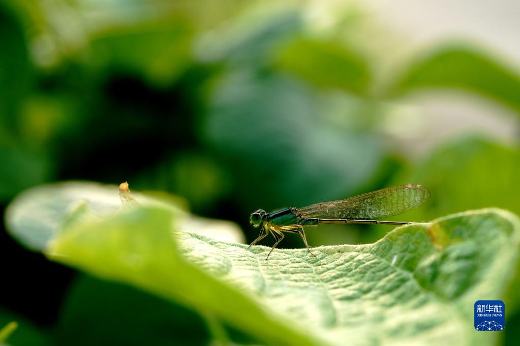 8月21日在上海松江區(qū)洞涇鎮(zhèn)一個(gè)家庭農(nóng)場(chǎng)菜地里拍攝的豆娘。