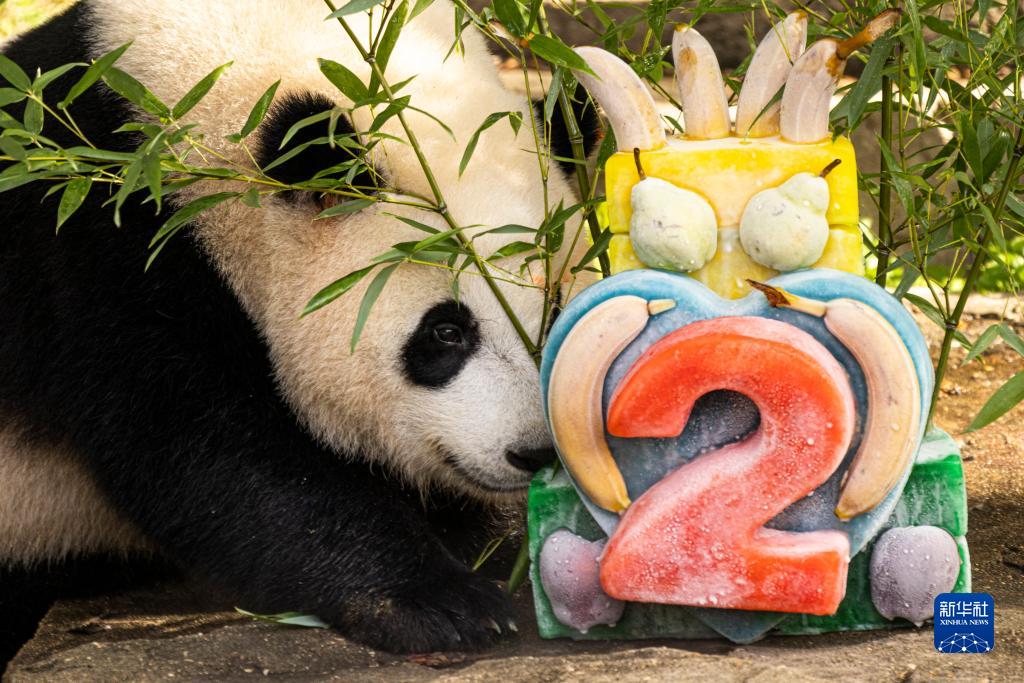 美國首都華盛頓史密森學會國家動物園21日為大熊貓幼崽“小奇跡”慶祝兩歲生日,飼養員專門為“小奇跡”制作了營養美味的冰凍果蔬蛋糕。