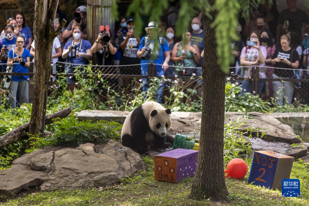 8月21日,在美國華盛頓史密森學會國家動物園,人們在大熊貓幼崽“小奇跡” 兩歲生日當天前來參觀。