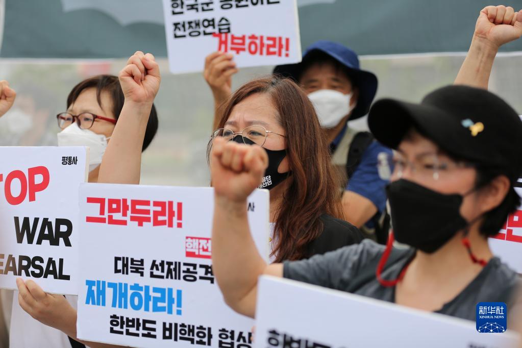 韓美兩國軍隊22日正式啟動下半年“乙支自由之盾”聯合軍演。韓國多個民間團體當天在首爾舉行抗議集會。