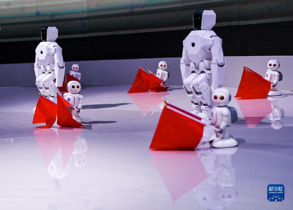 這是8月22日在2022中國國際智能產業博覽會重慶九龍坡展廳拍攝的機器人表演。