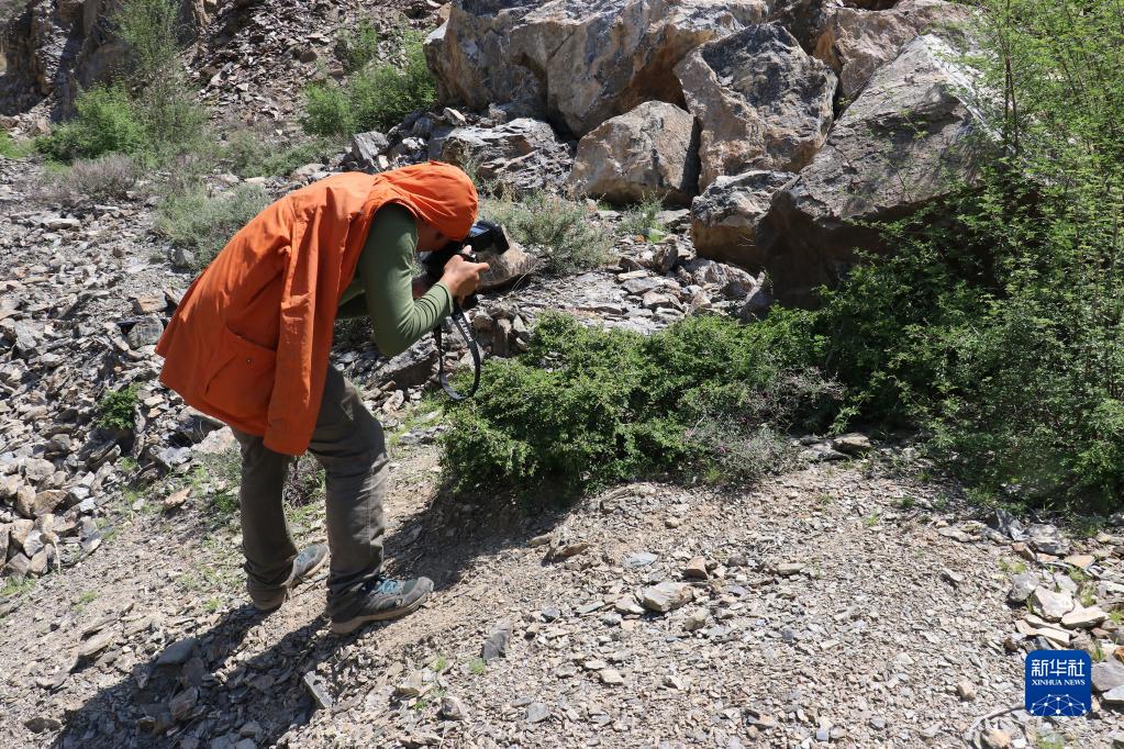 2021年,胡君在四川省得榮縣進行野外考察(資料照片)。新華社發
