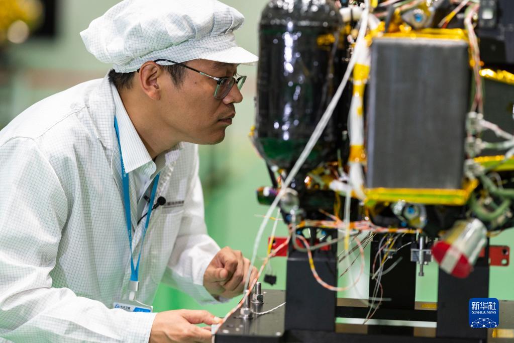 2022年8月3日,在長(zhǎng)光衛(wèi)星技術(shù)股份有限公司總裝車間,項(xiàng)目總師陳茂勝踏查“吉林一號(hào)”高分03衛(wèi)星生產(chǎn)工作。