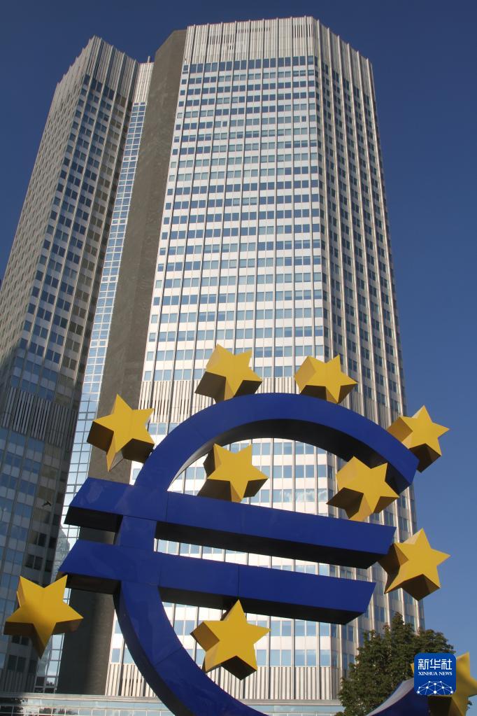 這是8月22日在德國法蘭克福拍攝的歐元雕塑。