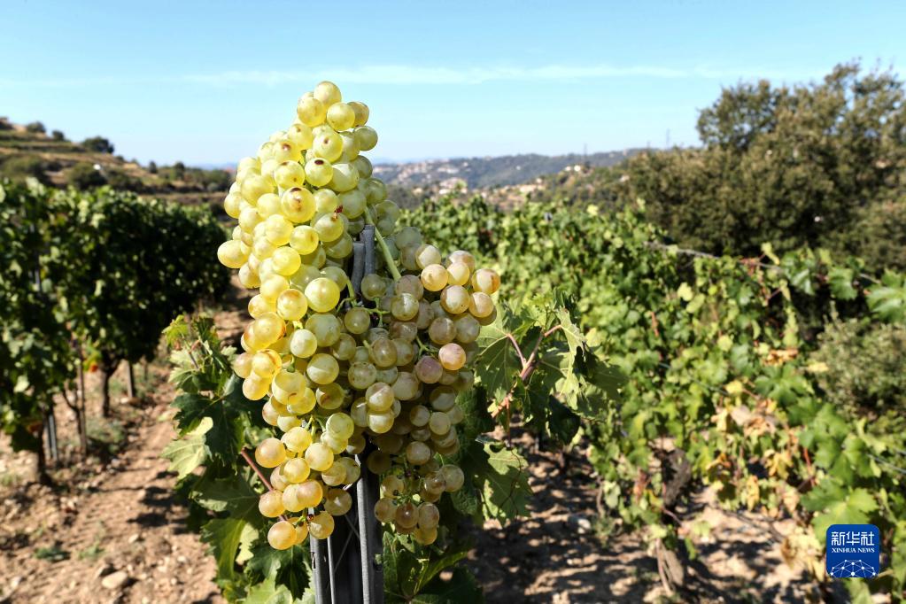 這是8月23日在法國尼斯一家酒莊的葡萄園拍攝的葡萄。