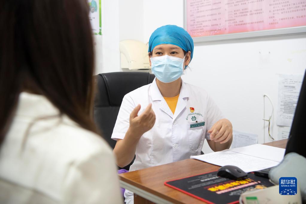 8月15日,黃瑩在武漢市硚口區漢水橋街社區衛生服務中心為居民診療。