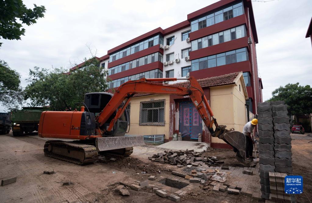 8月24日,工人在滄州渤海新區(qū)黃驊市交通小區(qū)升級改造現(xiàn)場施工。