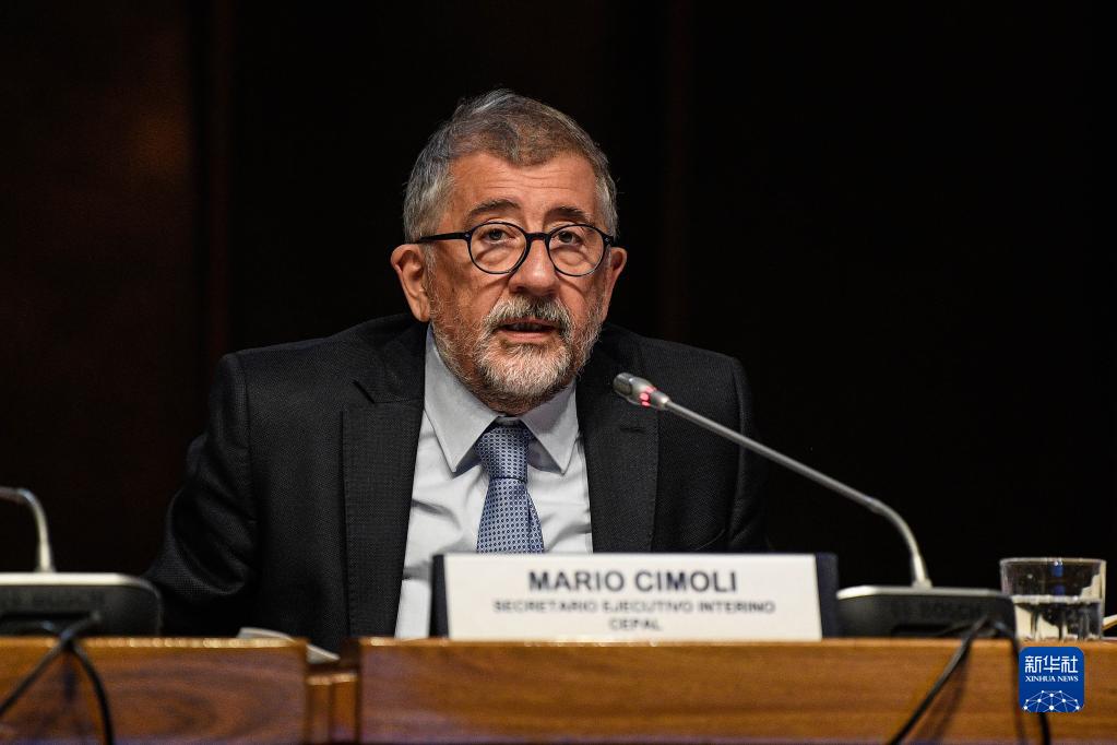 8月23日,拉加經委會臨時執行秘書馬里奧·西莫利在智利首都圣地亞哥出席新聞發布會。