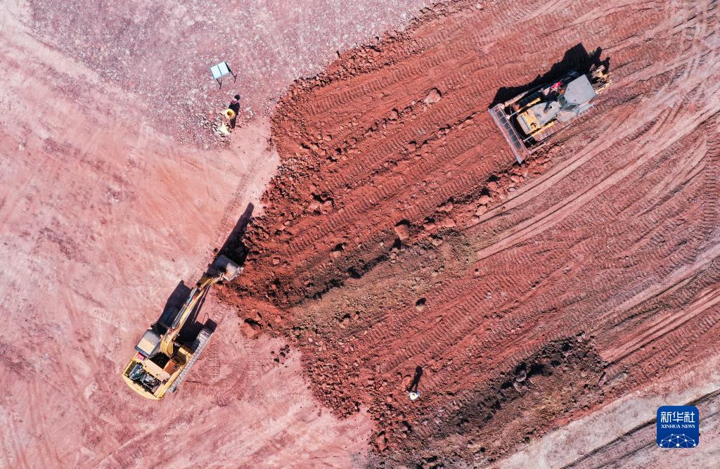 這是8月23日拍攝的新建重慶至黔江鐵路重慶東站動車所路基項目施工作業現場(無人機照片)。