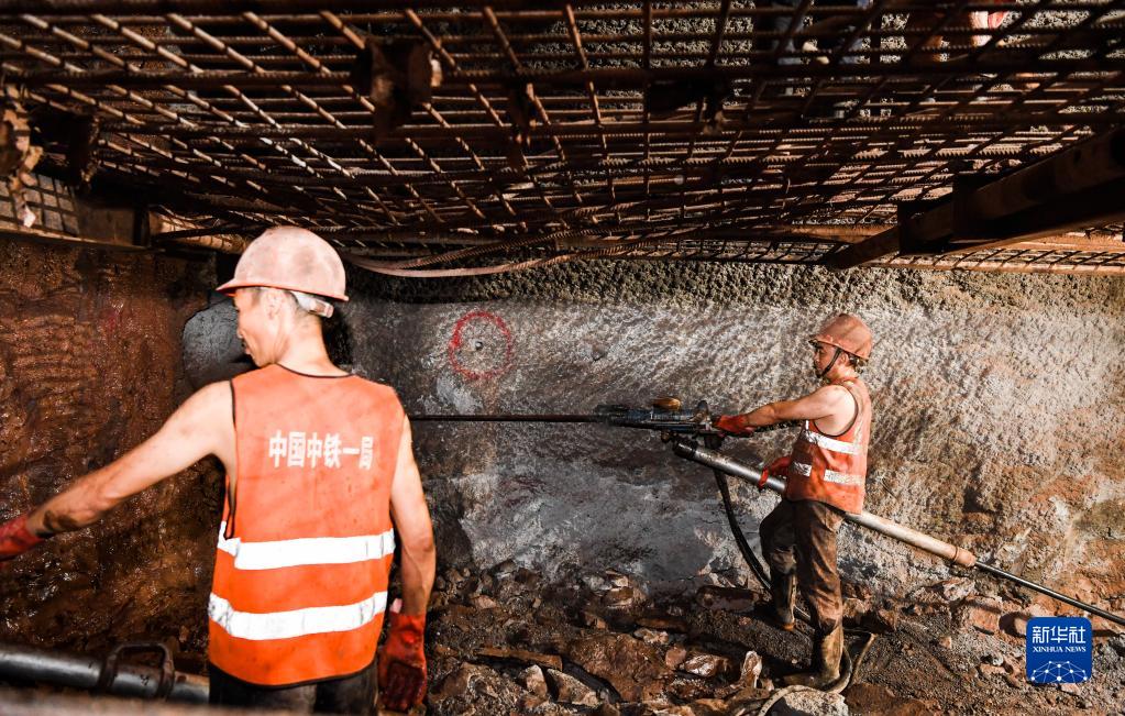 8月23日,工人在新建重慶至黔江鐵路張家山隧道項目作業。