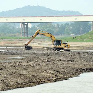 8月23日,在安徽省蕪湖市繁昌區(qū)荻港鎮(zhèn),水上挖掘機(jī)在河道里進(jìn)行清淤作業(yè),疏通引水渠道。