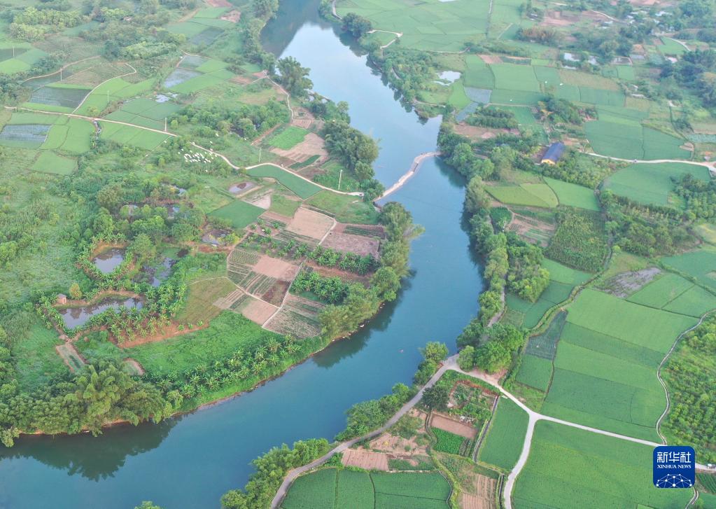 時下,廣西桂林市陽朔縣遇龍河沿岸山清水碧,草木蔥郁,在藍天白云掩映下,一派生機盎然景象。