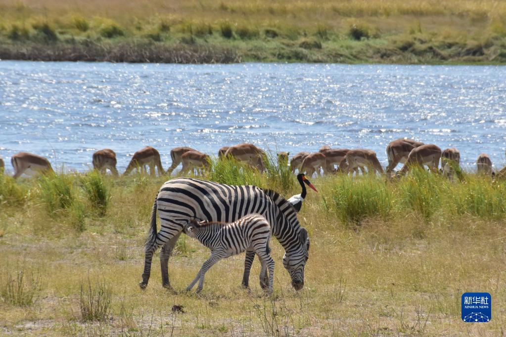 這是8月21日在博茨瓦納喬貝國家公園拍攝的斑馬。