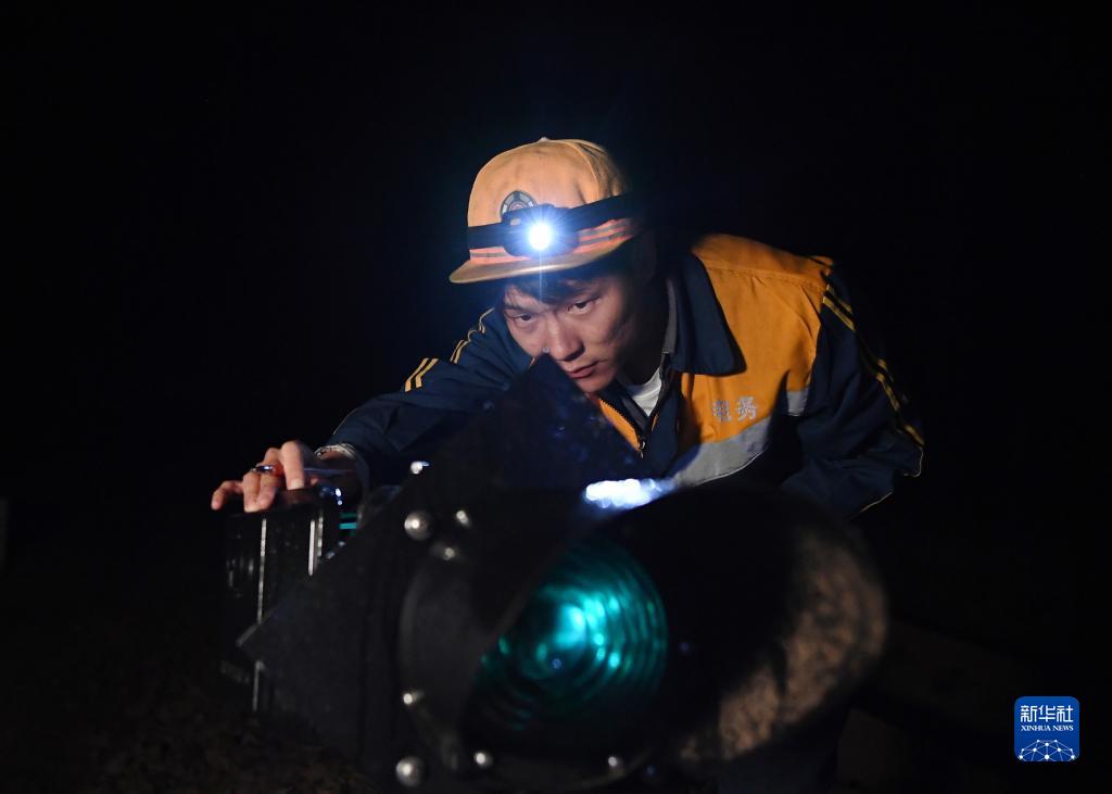 8月25日,嘉峪關(guān)電務(wù)段信號(hào)工宋健在蘭新鐵路玉石站軌道旁調(diào)試信號(hào)設(shè)備。