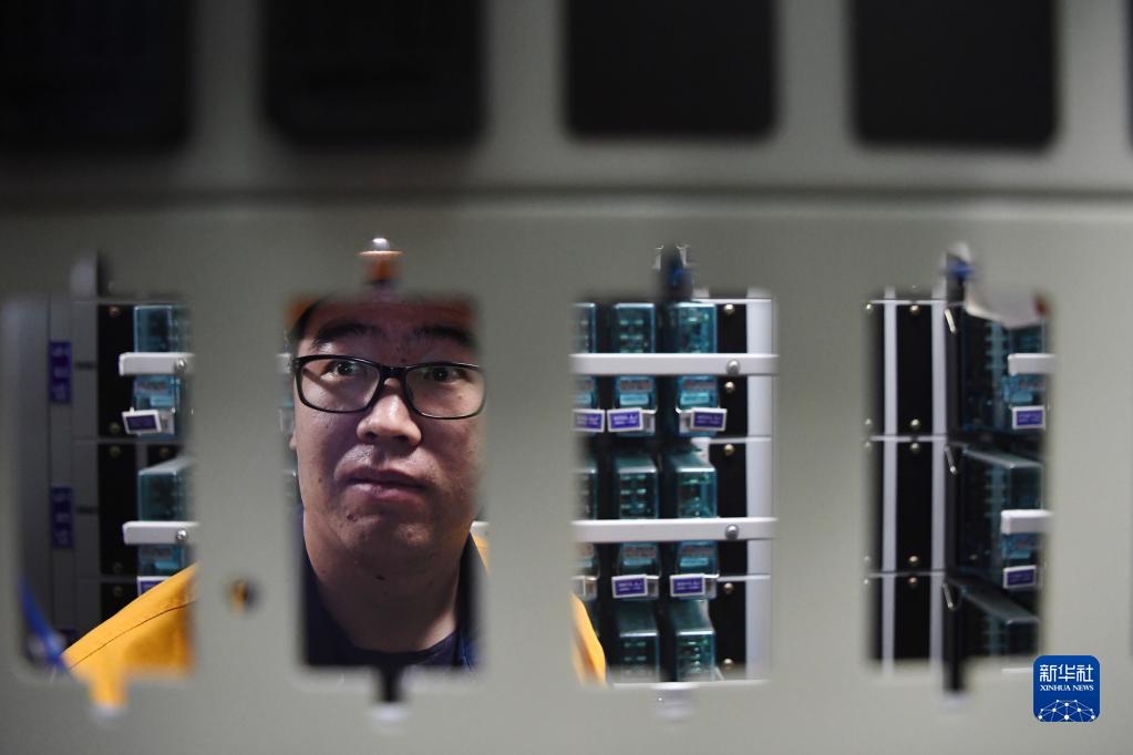 8月25日凌晨,嘉峪關電務段信號工張源芝在蘭新鐵路玉石站查看設備運行情況。