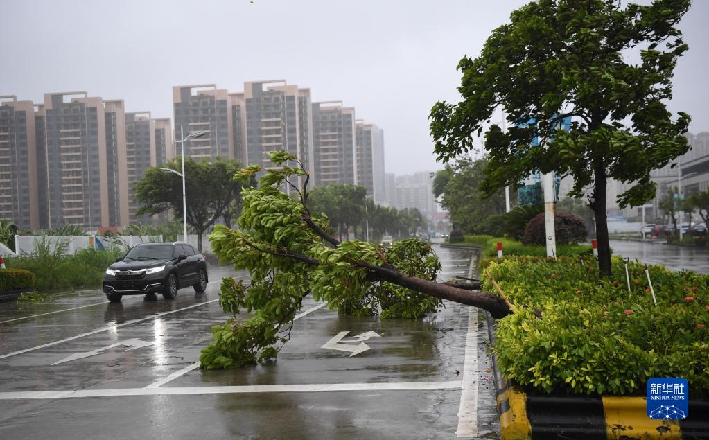 8月25日在廣東陽(yáng)江市東門南路拍攝的倒伏樹(shù)木。
