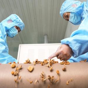 在黑龍江省大興安嶺地區加格達奇區一家山野珍品科技開發企業,工人對林下綠色有機食品進行加工作業(8月24日攝)。