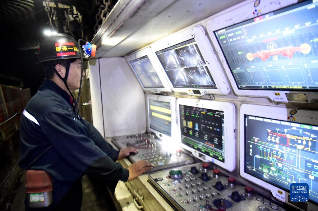 近來,全國多地遭遇高溫天氣,用電負荷增加,電煤需求攀升。在位于安徽省潁上縣的中煤新集能源股份有限公司劉莊煤礦,企業進行科學調度,充分發揮采掘能力,在確保安全的情況下,采取24小時不間斷輪班作業的方式,保持高負荷生產,保障電煤安全穩定供應。新華社記者 黃博涵 攝